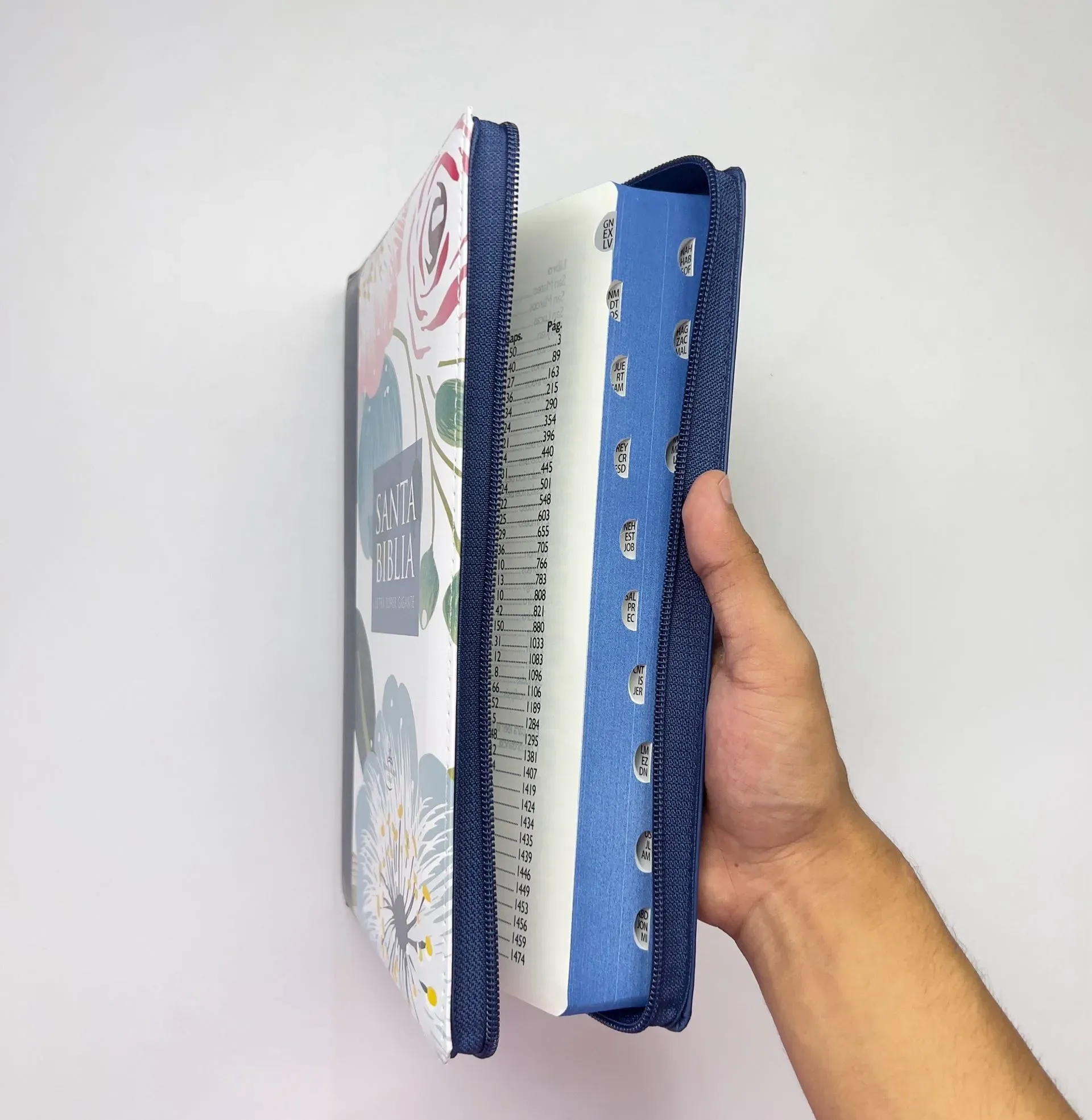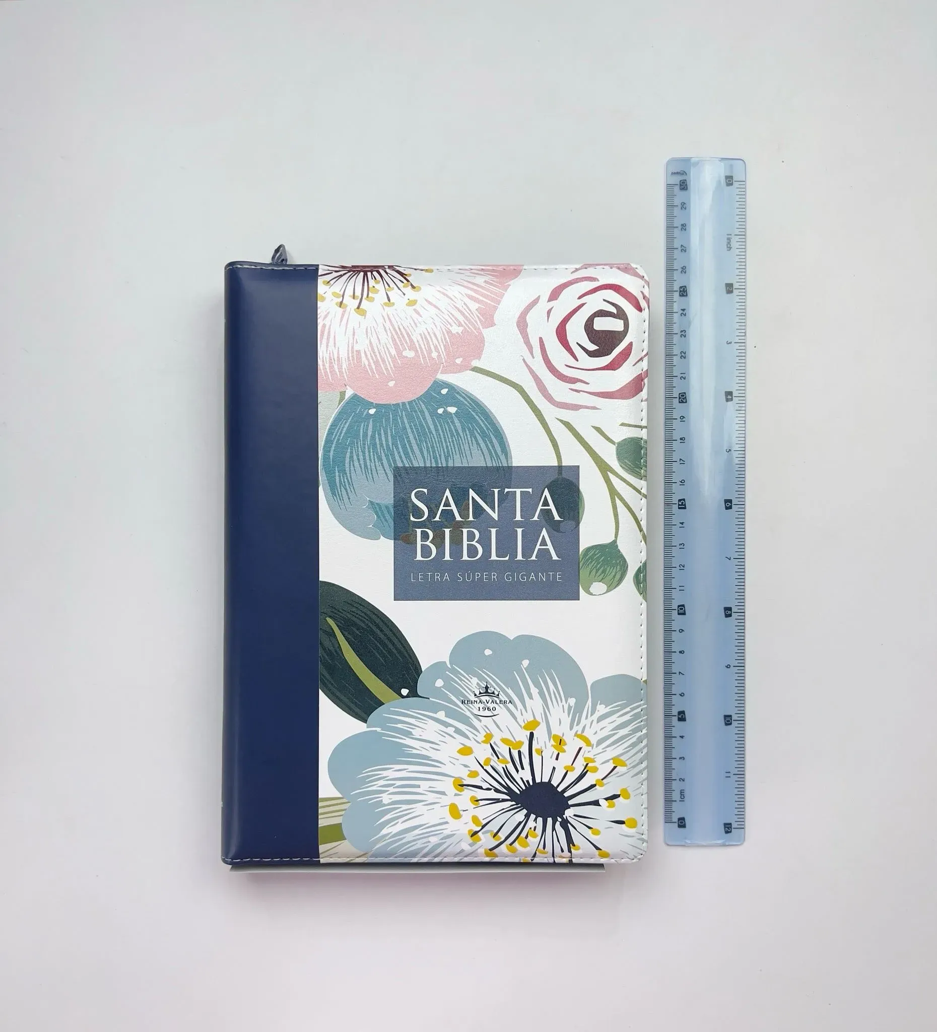 Biblia con Cierre Letra S úper Gigante 19 puntos RV1960 imit piel azul floral con índice - ISBN: 7899938422120