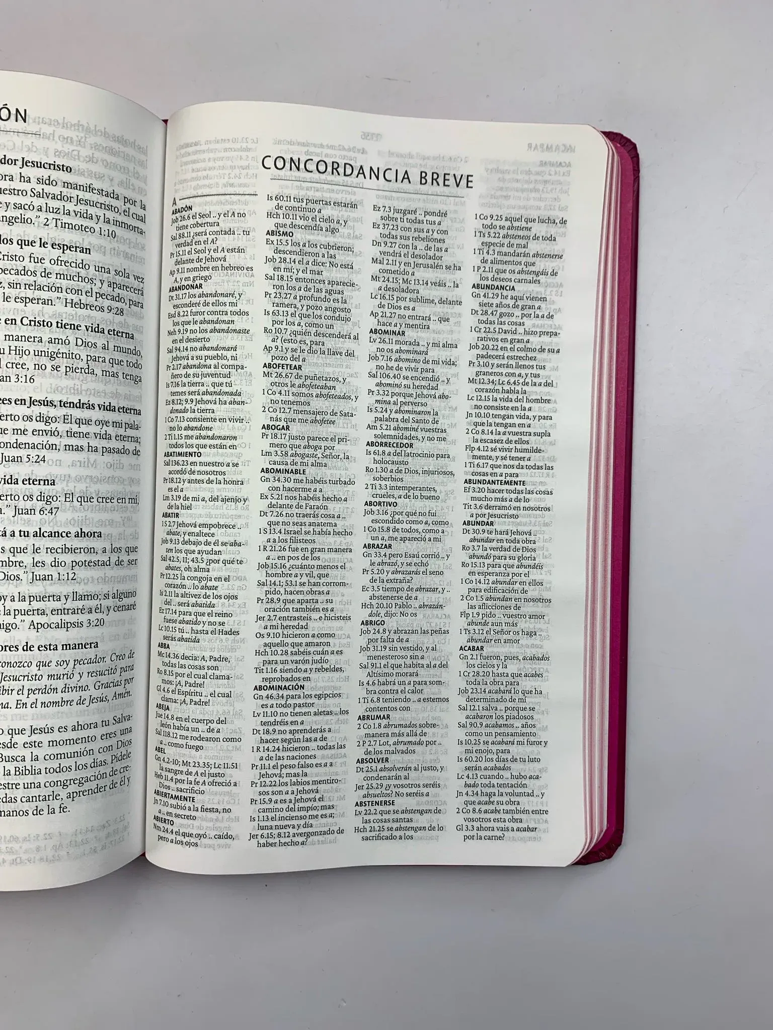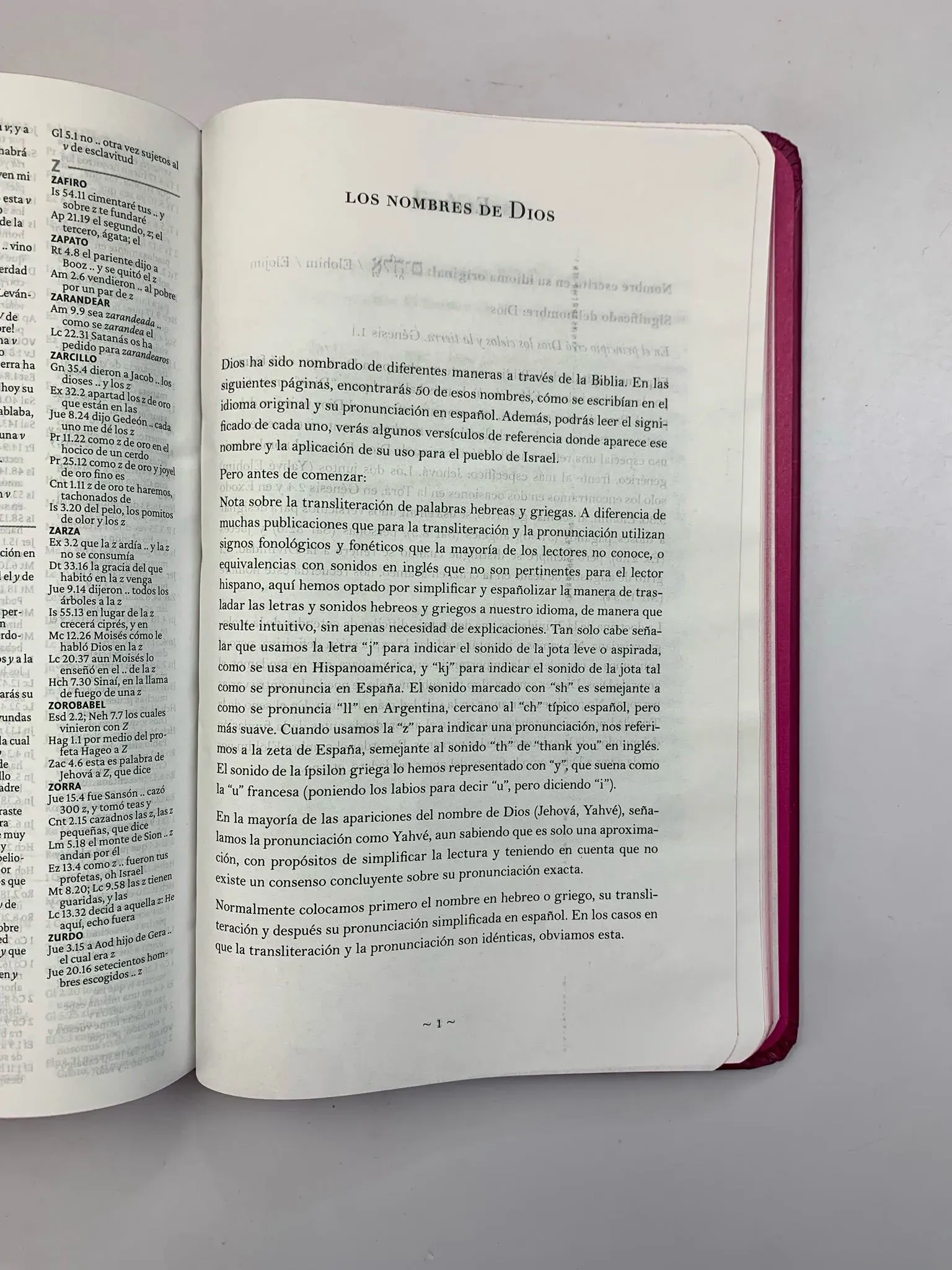 Biblia tamaño manual, ultrafina y con letra grande, tapa dura con un estudio conciso de los nombres de Dios.