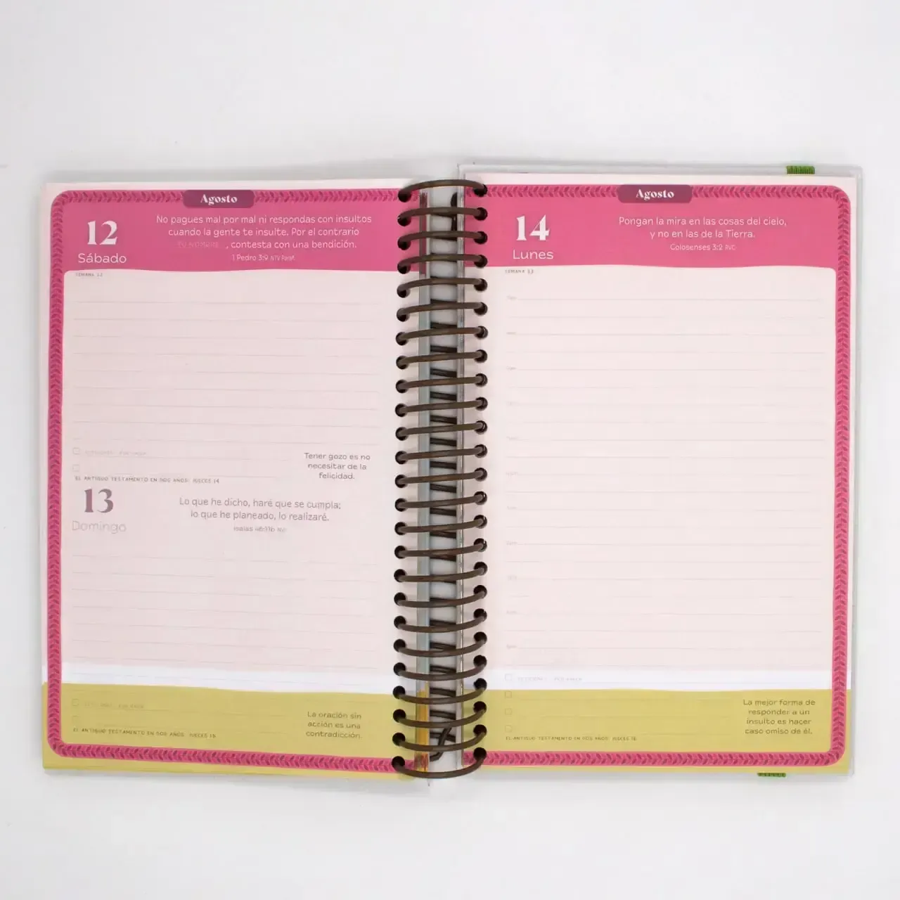 La Agenda Pechi es mucho más que una herramienta para organizar tu día. Nuestra misión es que Pechi sea tu amigo que te acompaña durante momentos de celebración y de prueba. Hemos seleccionado meticulosamente consejos, devocionales y versículos para que te ayuden a navegar cualquier tipo de situació...