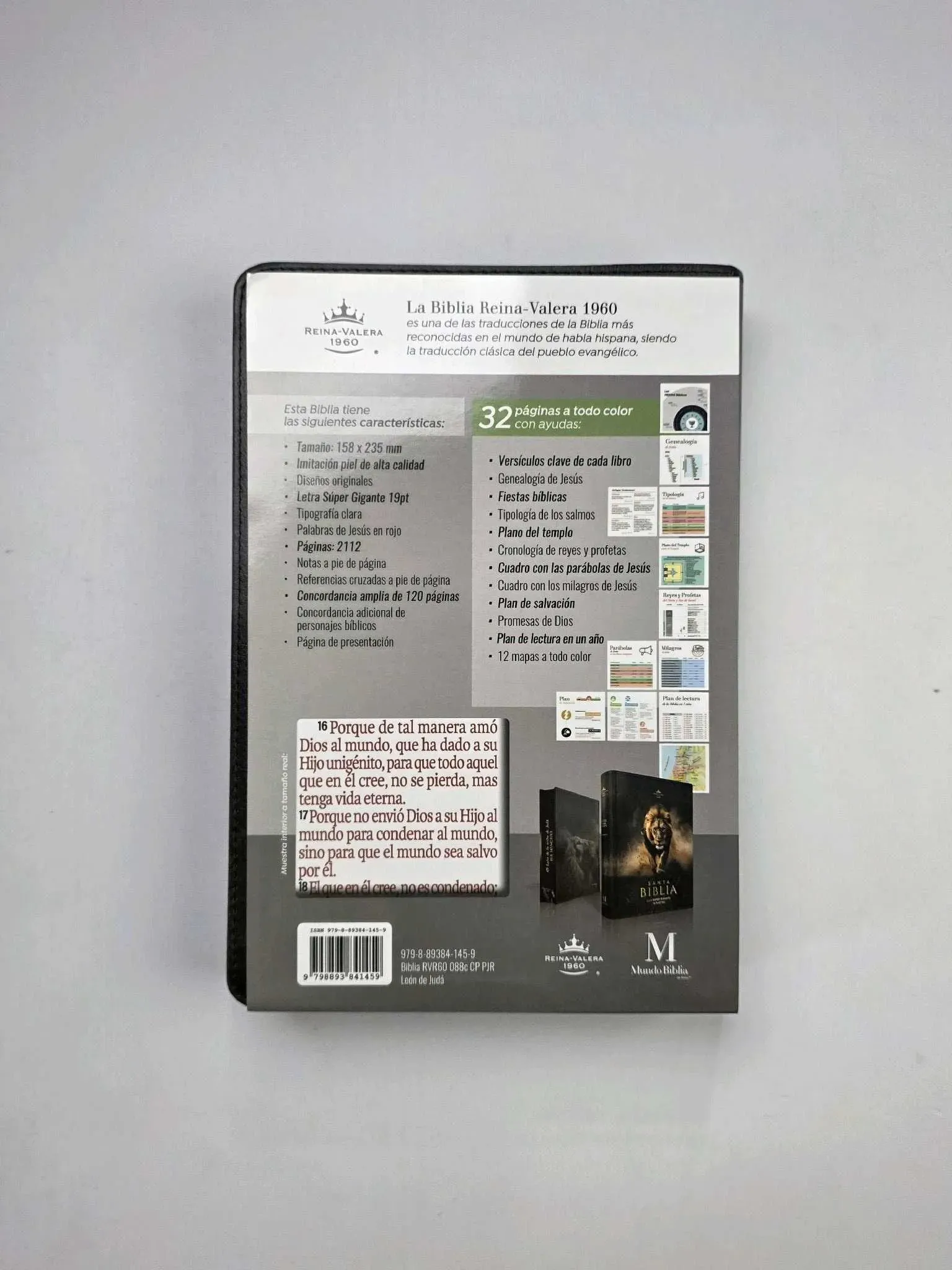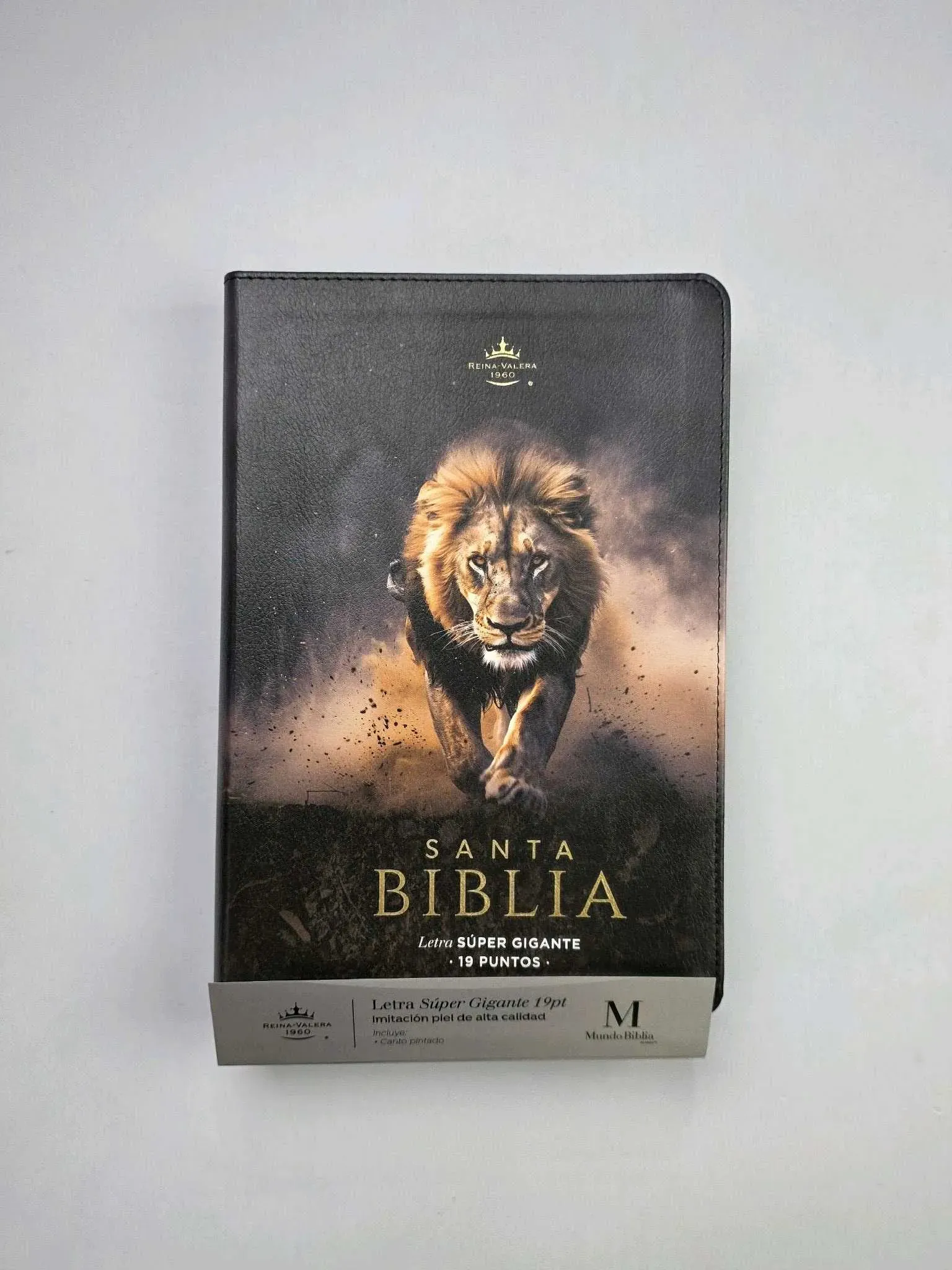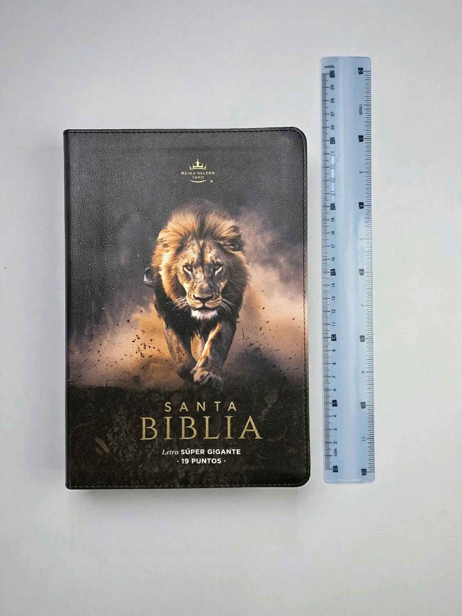 Biblia Letra Súper Gigante 19 puntos RV1960 Reina Valera 1960 imit piel negro león y canto ISBN: 9798893841459