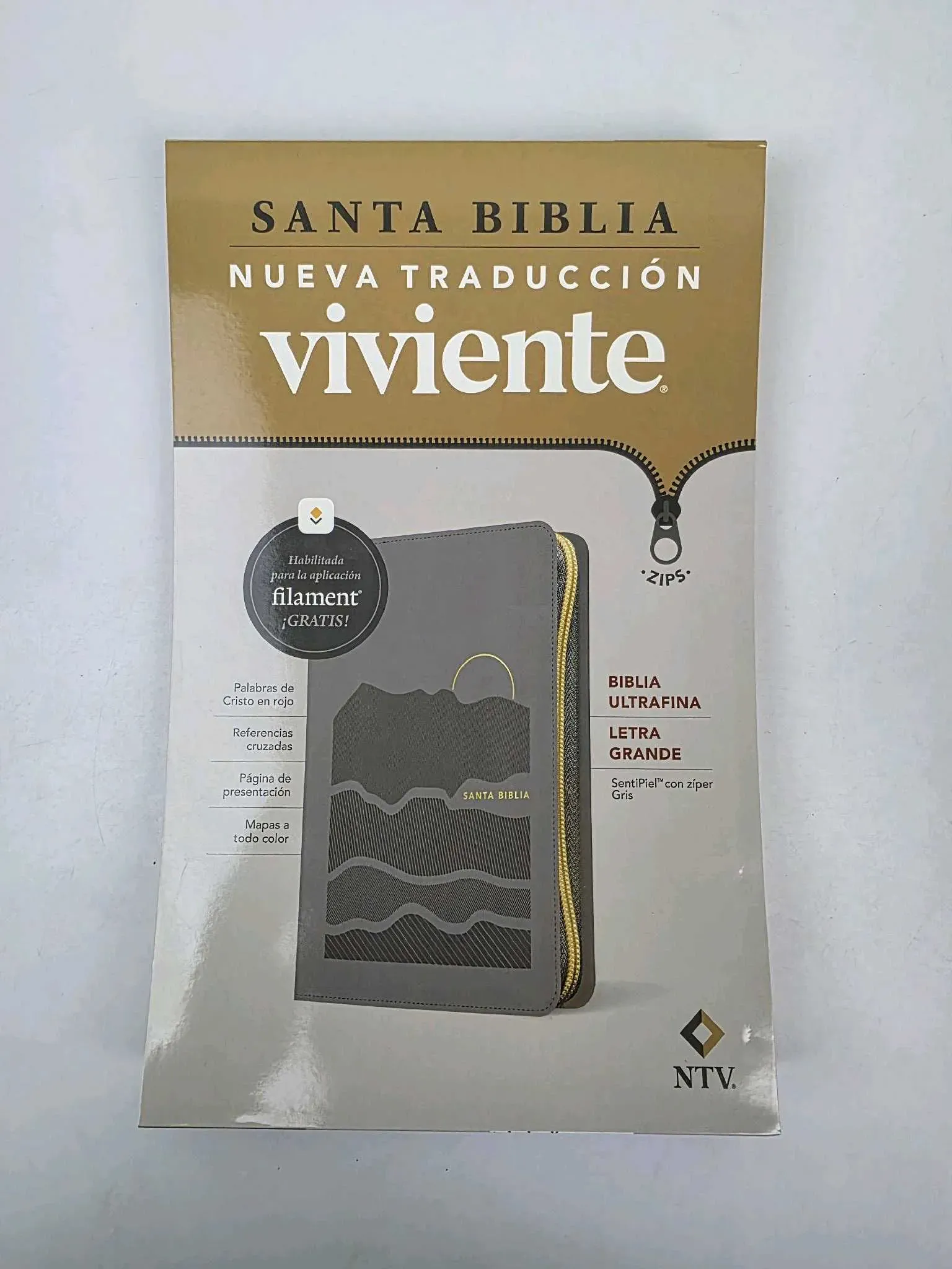 Biblia Ultrafina con Cierre NTV, sentipiel gris - Nueva Traducción Viviente - ISBN: 9798400501227