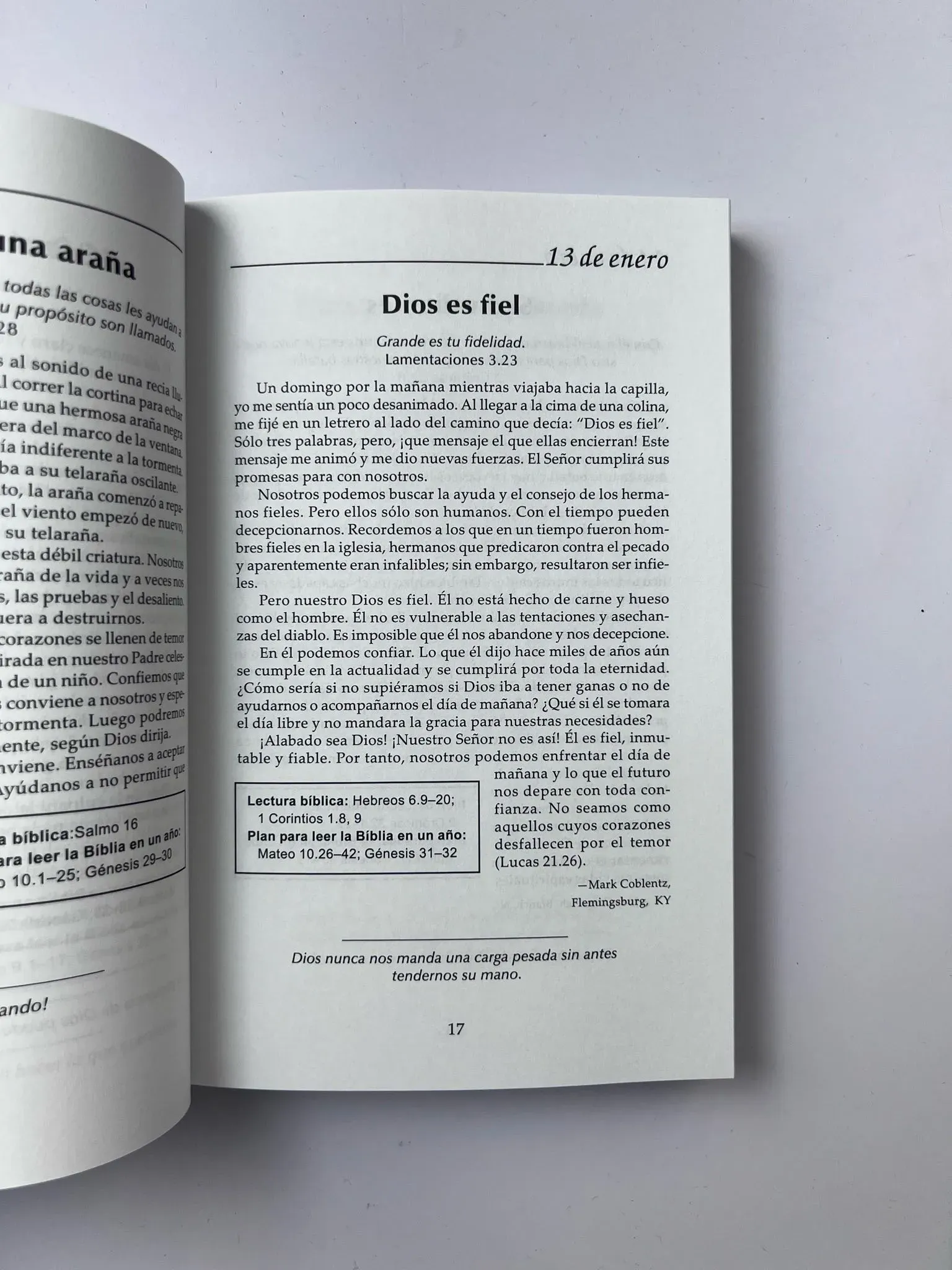 Junto a aguas de reposo Vol.3, compilado por “Still Waters Ministries”. Es esencial tener un tiempo diario para comunicarnos con Dios si deseamos lograr una vida cristiana triunfante. Junto a aguas de reposo le presenta una “meditación” para cada día del año, una lectura bíblica diaria y plan para l...